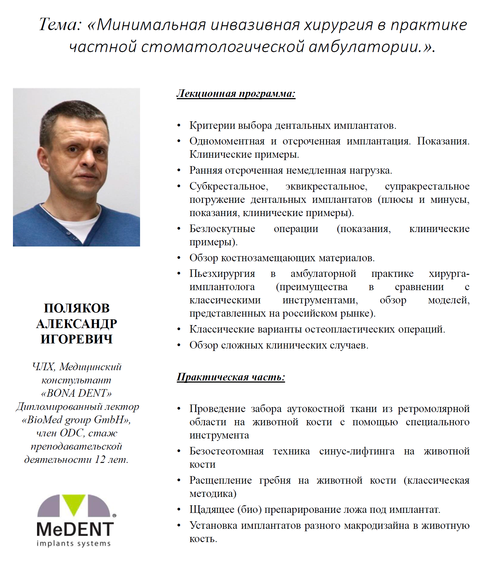 (Челюстно-лицевой хирург, медицинский консультант «BONADENT», дипломированный лектор